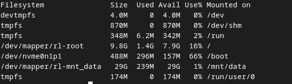 # lvextend -l +99%Free /dev/mapper/rl-mnt_data
