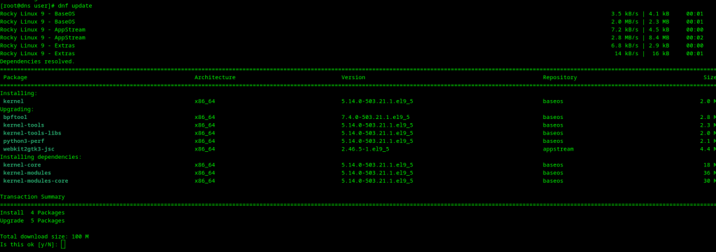 Merhabalar bugün sizlere Centos sonrasında hayatımıza giren Rock Linux ‘ta DNS Kurulumunu sizlere görsellerle anlatmaya çalışacağım ; ilk önce ortammızda bulunan Rock Linux ile bağlantımızı kuruyoruz bunun için ssh username@ip_address ve ardından şifremiz ile Rocky Linux ‘a girişimizi yapıyoruz.Sonrasında sırası ile aşağıdaki işlemleri gerçekleştiriyoruz