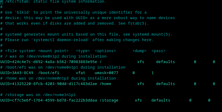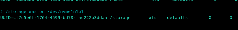 Diğer önemli bir noktada bu bağlanacak alanın UUID lerini doğrulamamız gerekiyor bunun bir çok yolu bulunmakla beraber sudo cfdisk /dev/sdx olarak veya cat /dev/disk/by-uuid altında yeni diskimizin UUID sini buluyoruz ve bunu text editor altına kopyalıyoruz :)