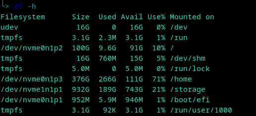 En son olarak df -h komutu ile gelen çıktımızda /storage olduğunu gördük