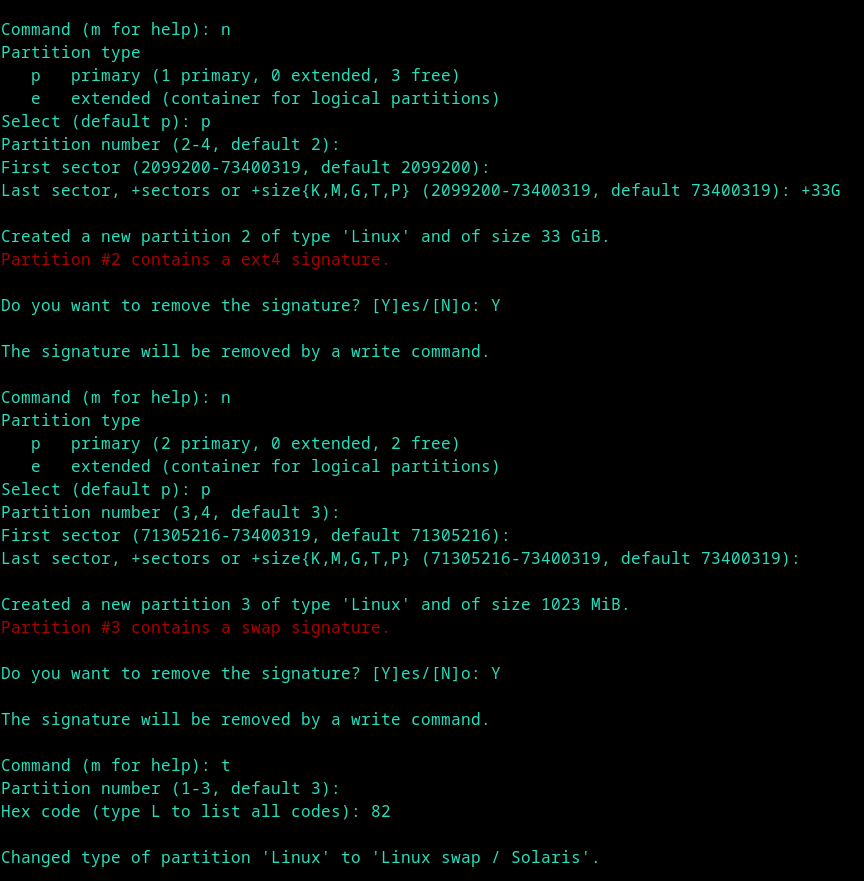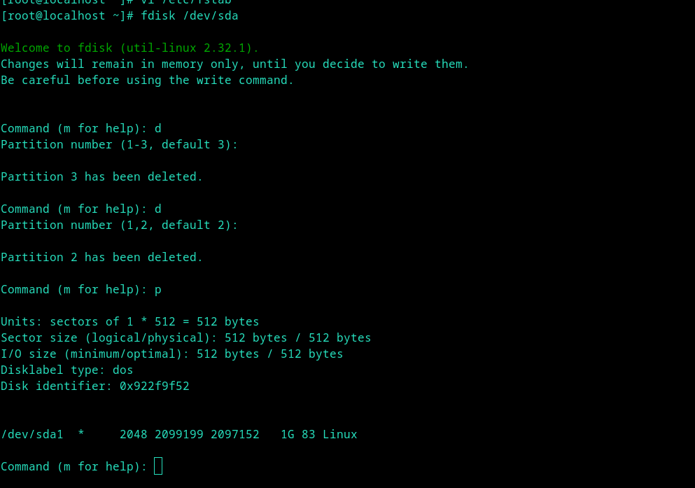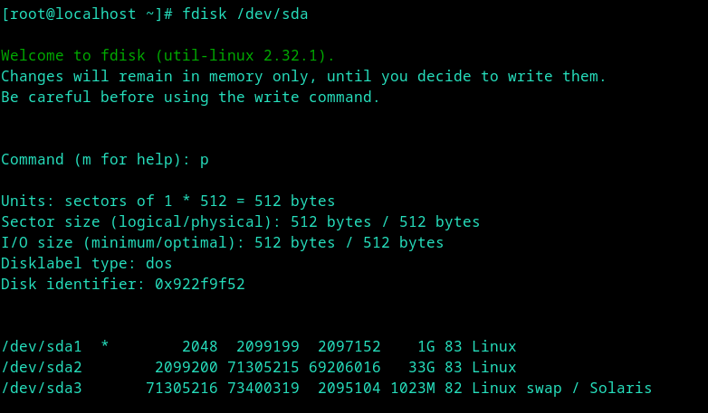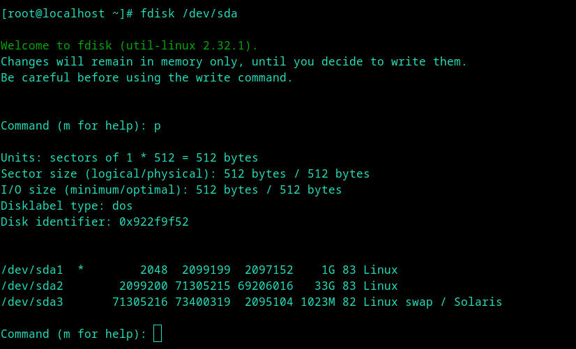 fdisk /dev/sda komutu ile disk alanını görüntülüyoruz