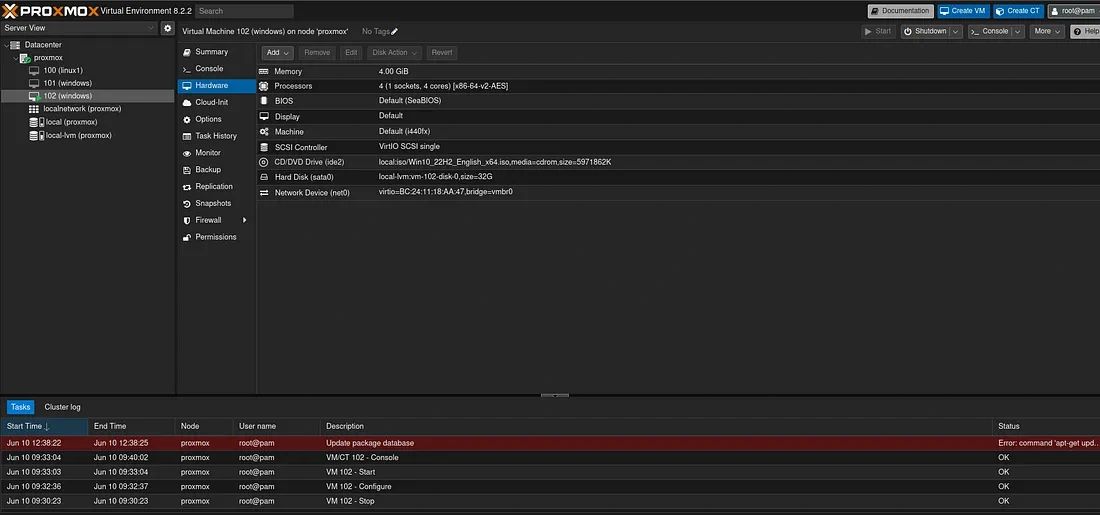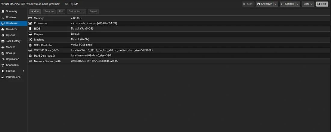 Sonrasında qemu kaynaklarını düzenleyip iso dosyamızı gösterip sistem kurulumumuza başlıyoruz.